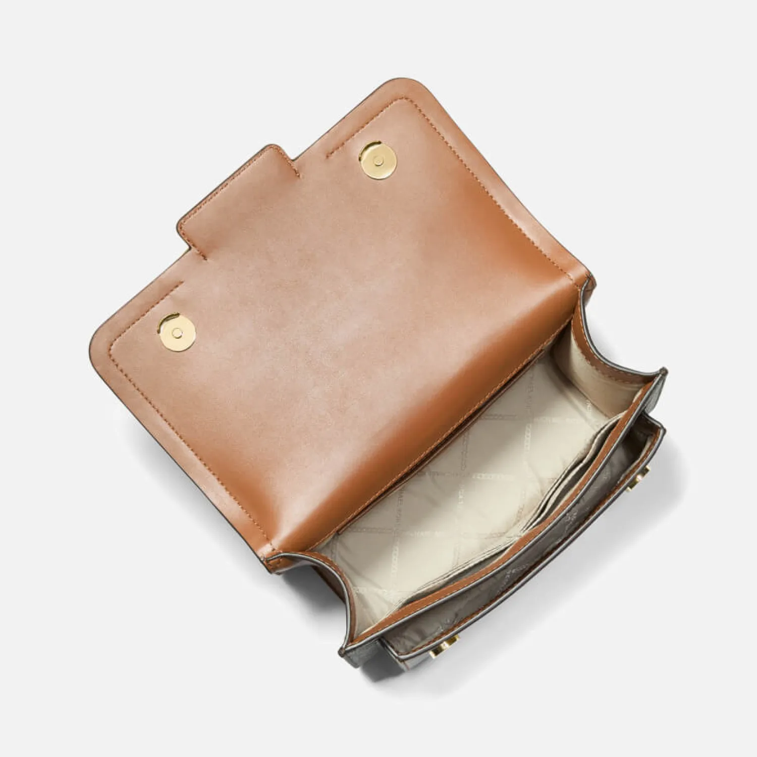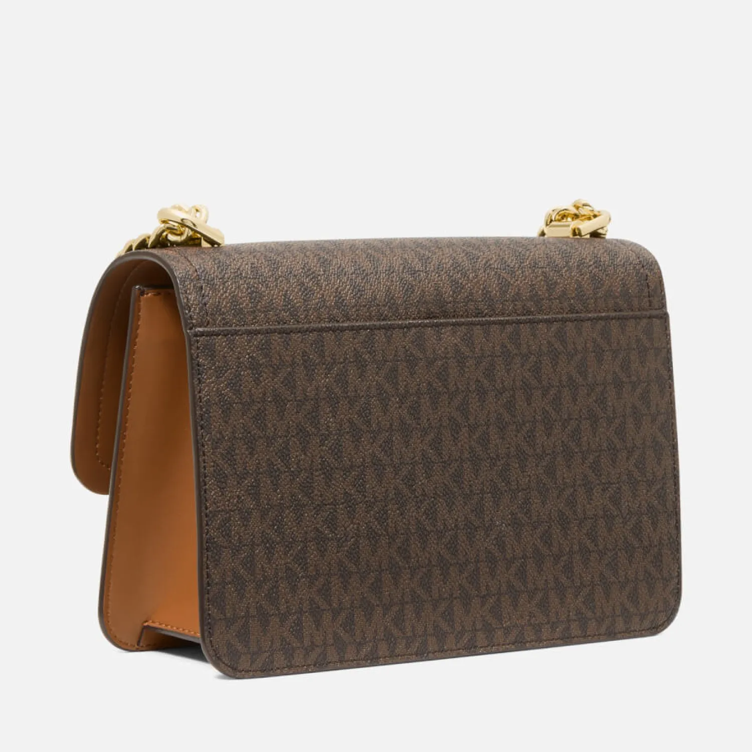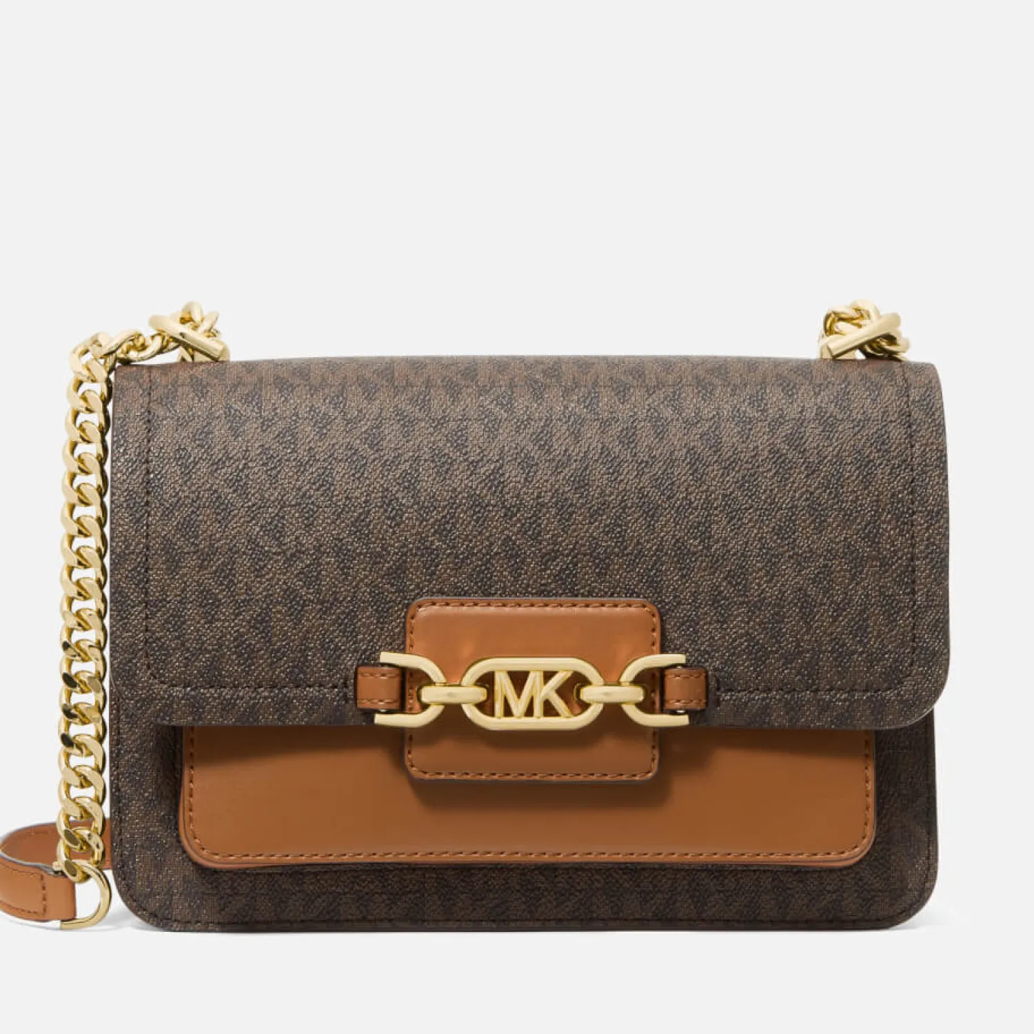 Michael Michael Kors Heather Shoulder BagBrown Coated Canvas And Tan Faux LeatherChain StrapChain LogoBack Snap PocketGo…