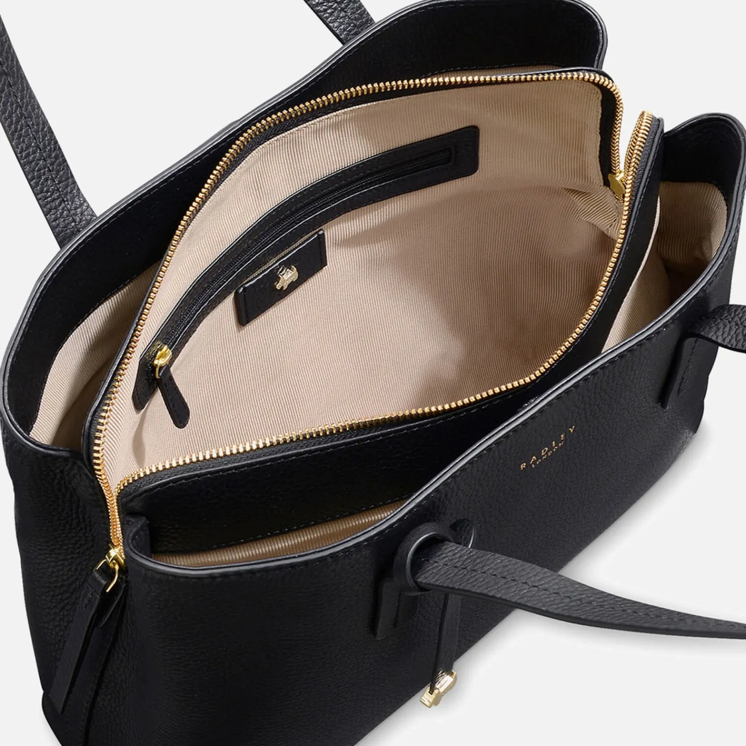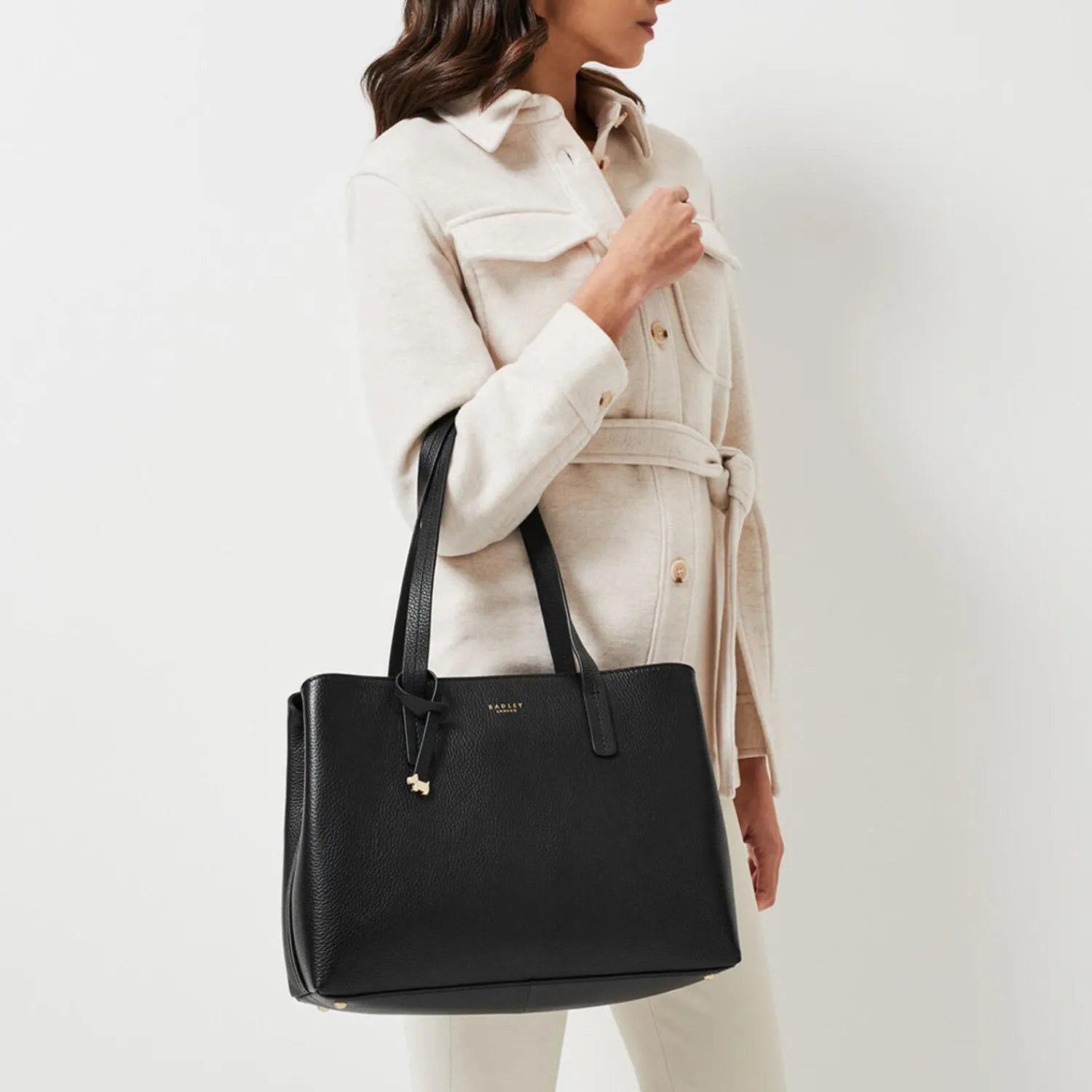 Radley’s Enduring Styles Are Designed To Look Effortless Season After Season. Fashioned From Grained Leather The Dukes Place Tote Bag Is Home To A Pocketed Interior That’s Divided With A Zipped Compartment Down The Centre. It Has Dual Top Handles Decked With The Label’s Iconic Scottie Charm.