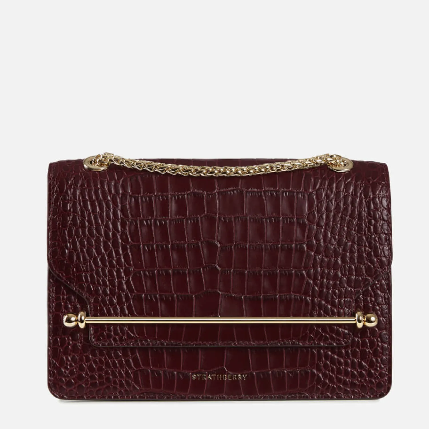 Crafted From Leather Strathberry’S East/West Shoulder Bag Is Finished With Embossed Croc Detailing To Deliver A Refined Aesthetic. The Signature Bar Closure Adorns The Structured Silhouette Which Opens To A Multiple Compartment Interior With A Single Slip Pocket. A Gold-Tone Dual Length Strap Offers Versatile Styling Options.