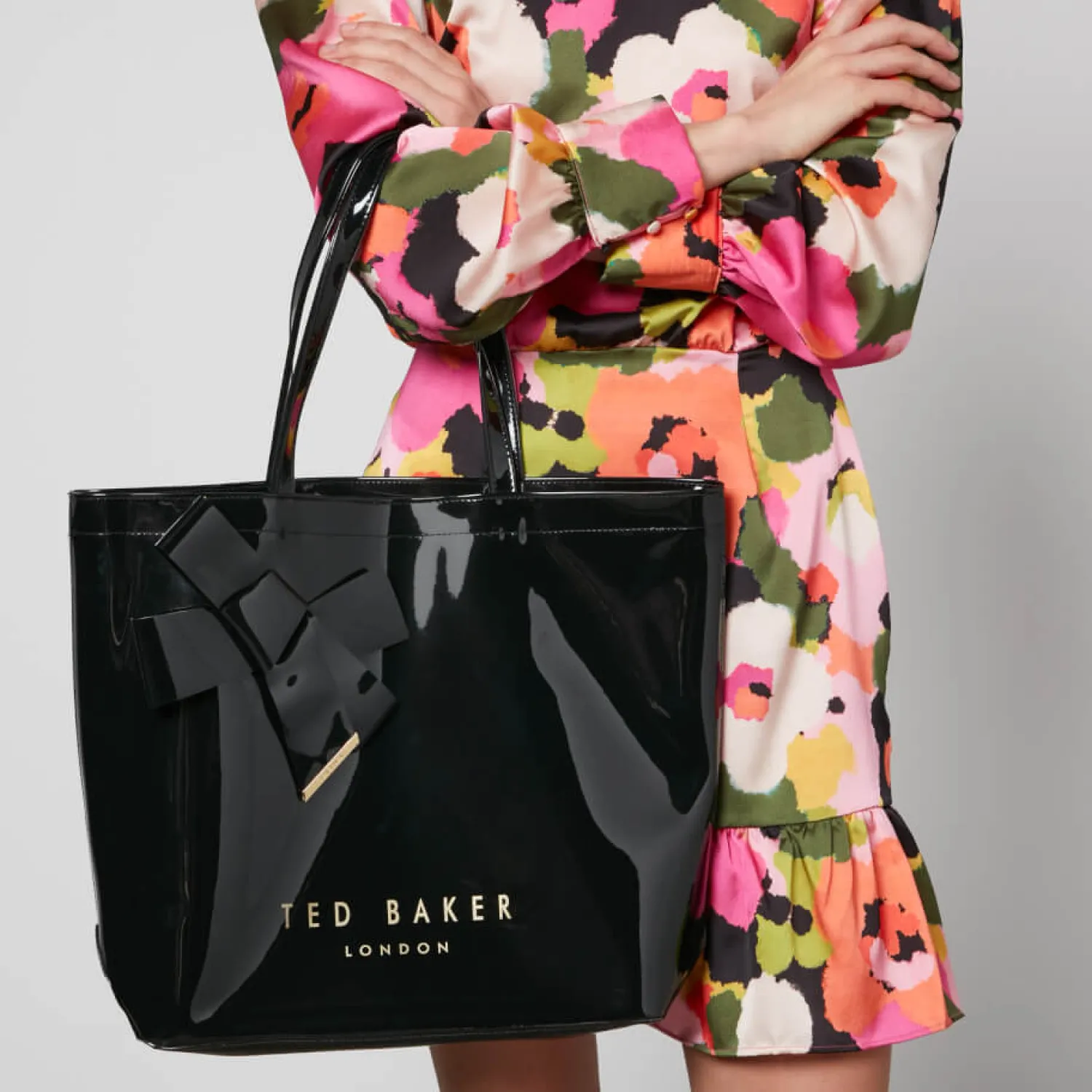 It’S The Everyday Shopper You’Ve Been Looking For – Ted Baker’S Large Nicon Tote Bag Offers A Roomy Interior That’S Perfect For Holding The Essentials. It’S Made From Glossy Vinyl Which Is Adorned With Signature Bow Detailing To Add A Striking Touch To Any Ensemble. Simply Carry Over The Shoulder With The Double Handle Strap.