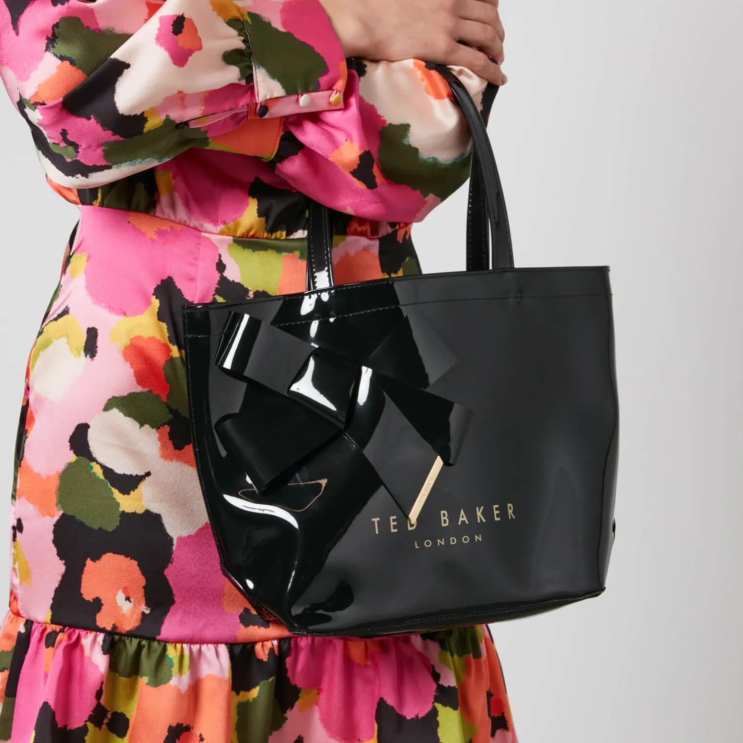 It’S The Everyday Shopper You’Ve Been Looking For – Ted Baker’S Small Nikicon Tote Bag Offers A Roomy Interior That’S Perfect For Holding The Essentials. It’S Made From Glossy Vinyl Which Is Adorned With Signature Bow Detailing To Add A Striking Touch To Any Ensemble. Simply Carry Over The Shoulder With The Double Handle Strap.