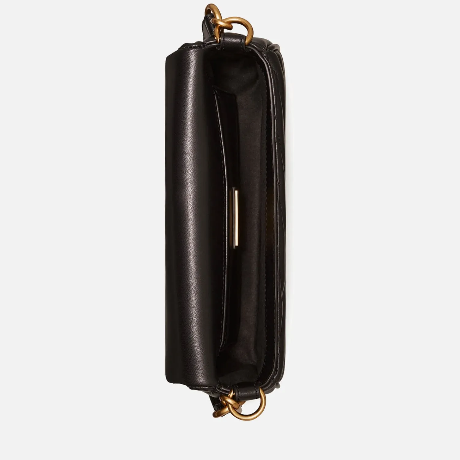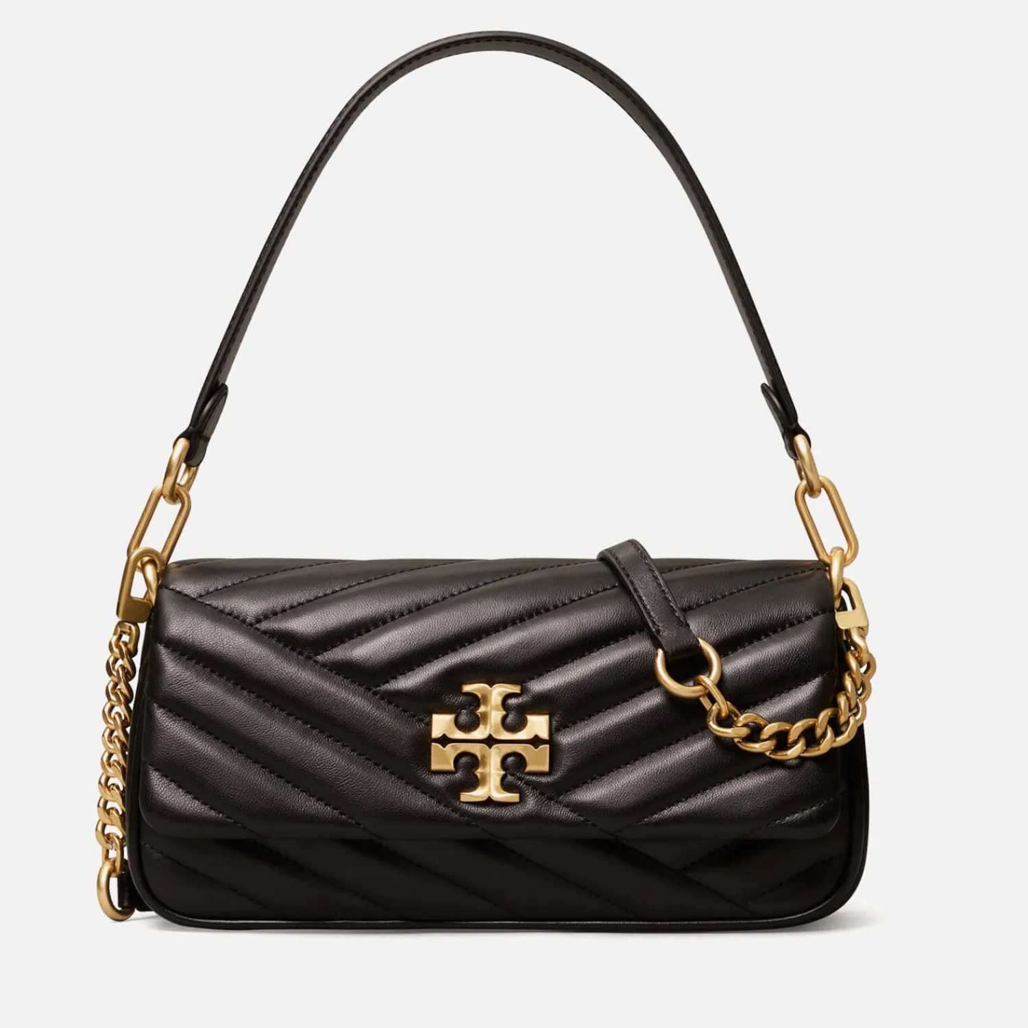 Tory Burch’S Bevelled ‘Double T’ Hardware Illuminates The Small Kira Shoulder Bag. Whipped Up From Supple Black Leather All-Over Chevron Quilting Offers A Soft And Pillowy Dimension. Gold-Tone Chain Inserts Elevate The Classic Silhouette.