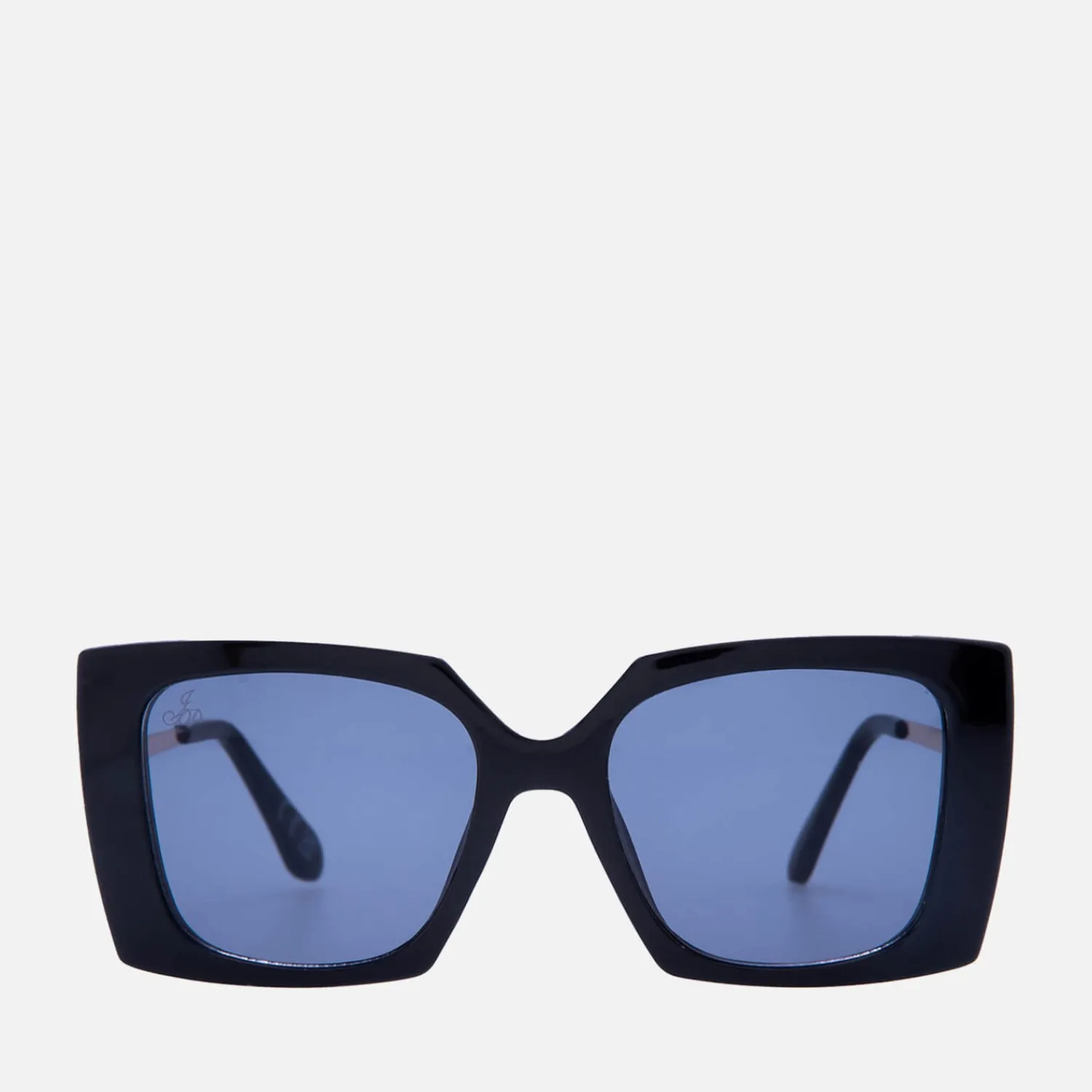 Jeepers Peepers Oversized Square-Frame SunglassesBlack AcetateBlue LensesGold-Tone Metal ArmsModel Number: Jp18972
