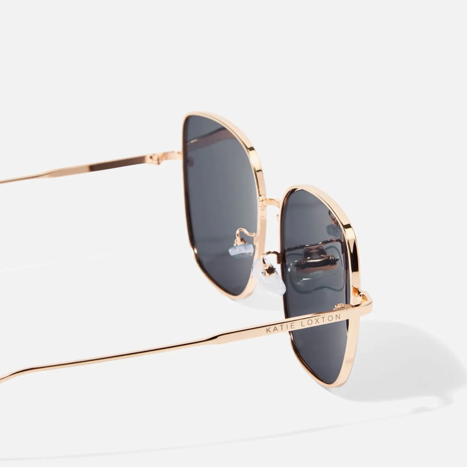 Katie Loxton Sahara SunglassesGold-Toned MetalThin FrameBlack LensesDesigner Logo