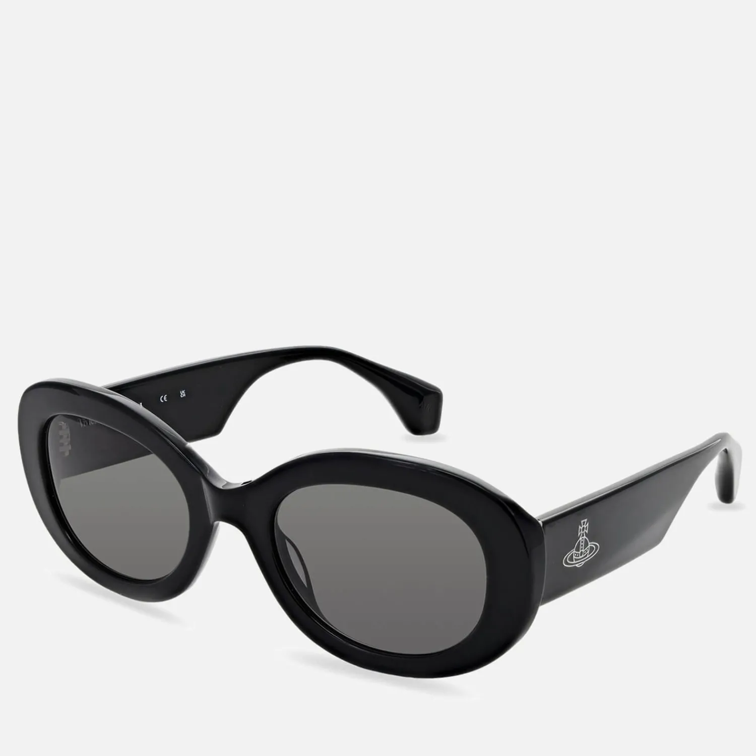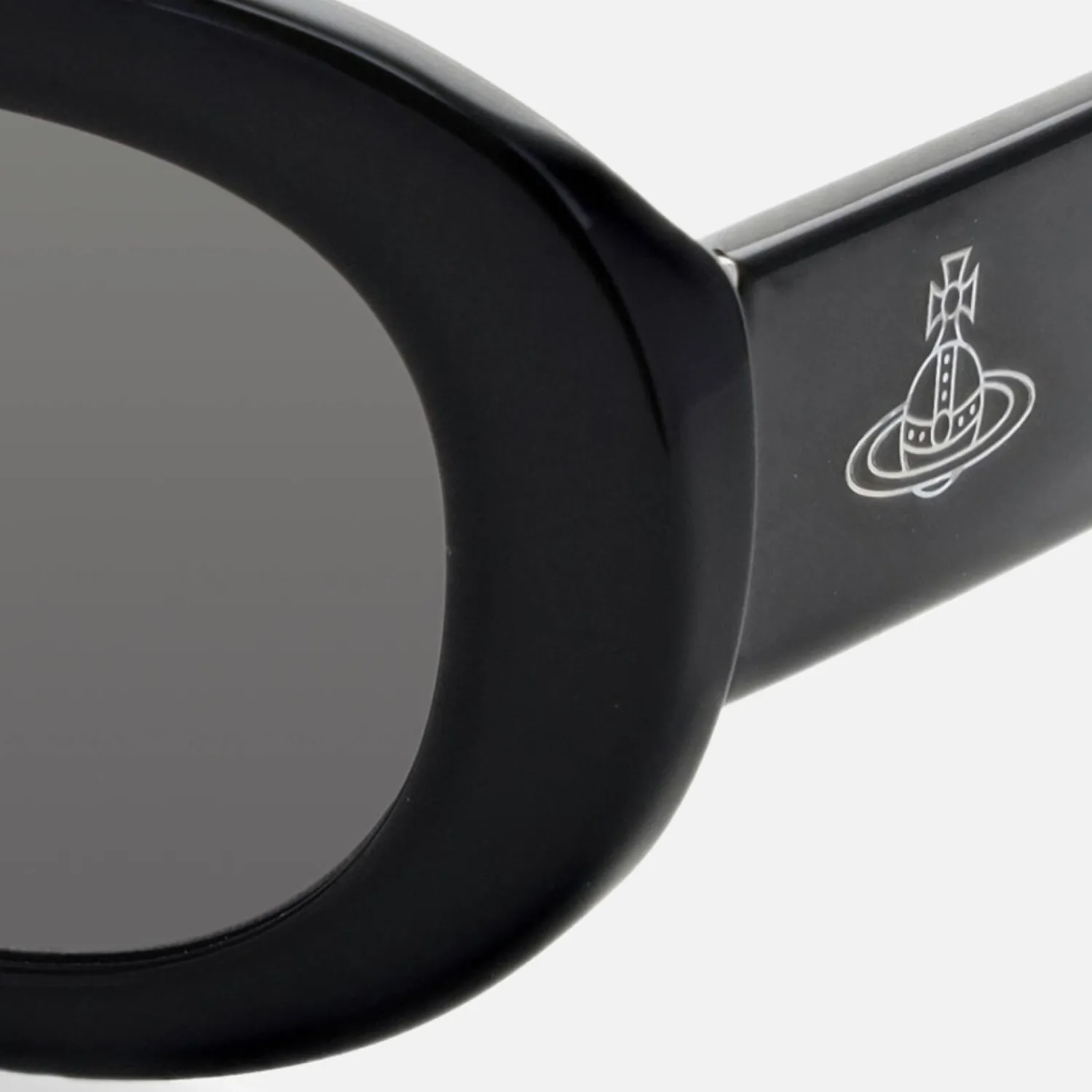 Vivienne Westwood’S Sunglasses Are Made From Black Acetate And Have A Rounded Oversized Design For A Retro Look. Fitted With Smoke Grey Lenses The Vintage Design Showcases The Brand’S Iconic Orb Logo On Each Of The Chunky Temples.