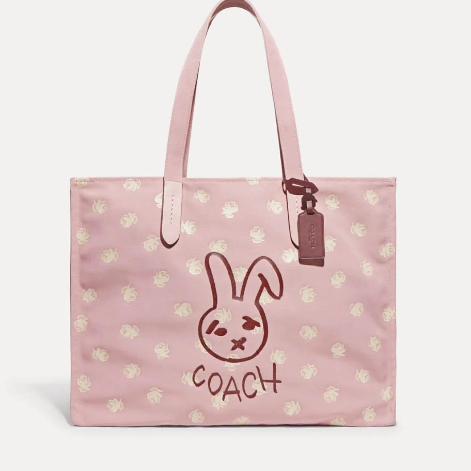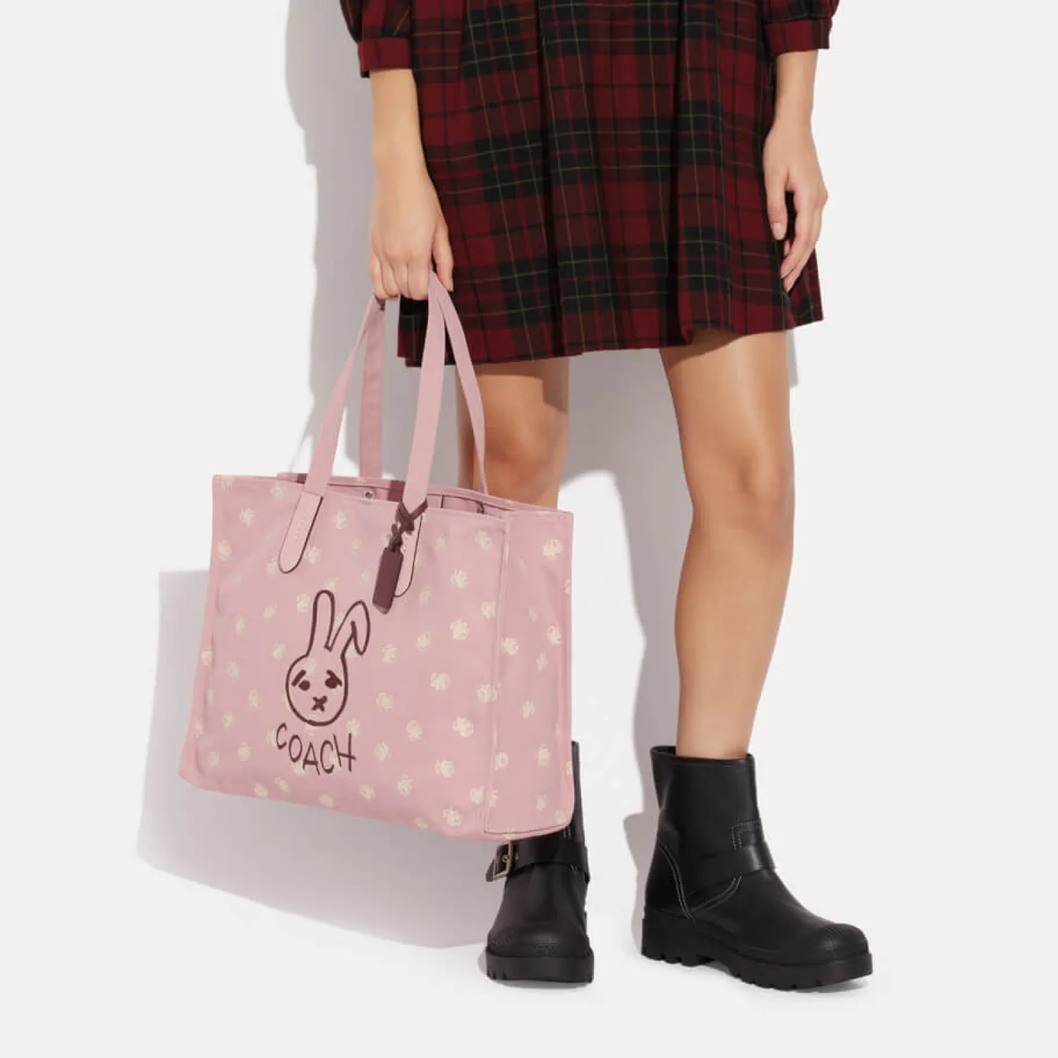 Coach Tote BagPink Recycled CanvasTop HandlesDesigner LogoMagnetic Snap Closure