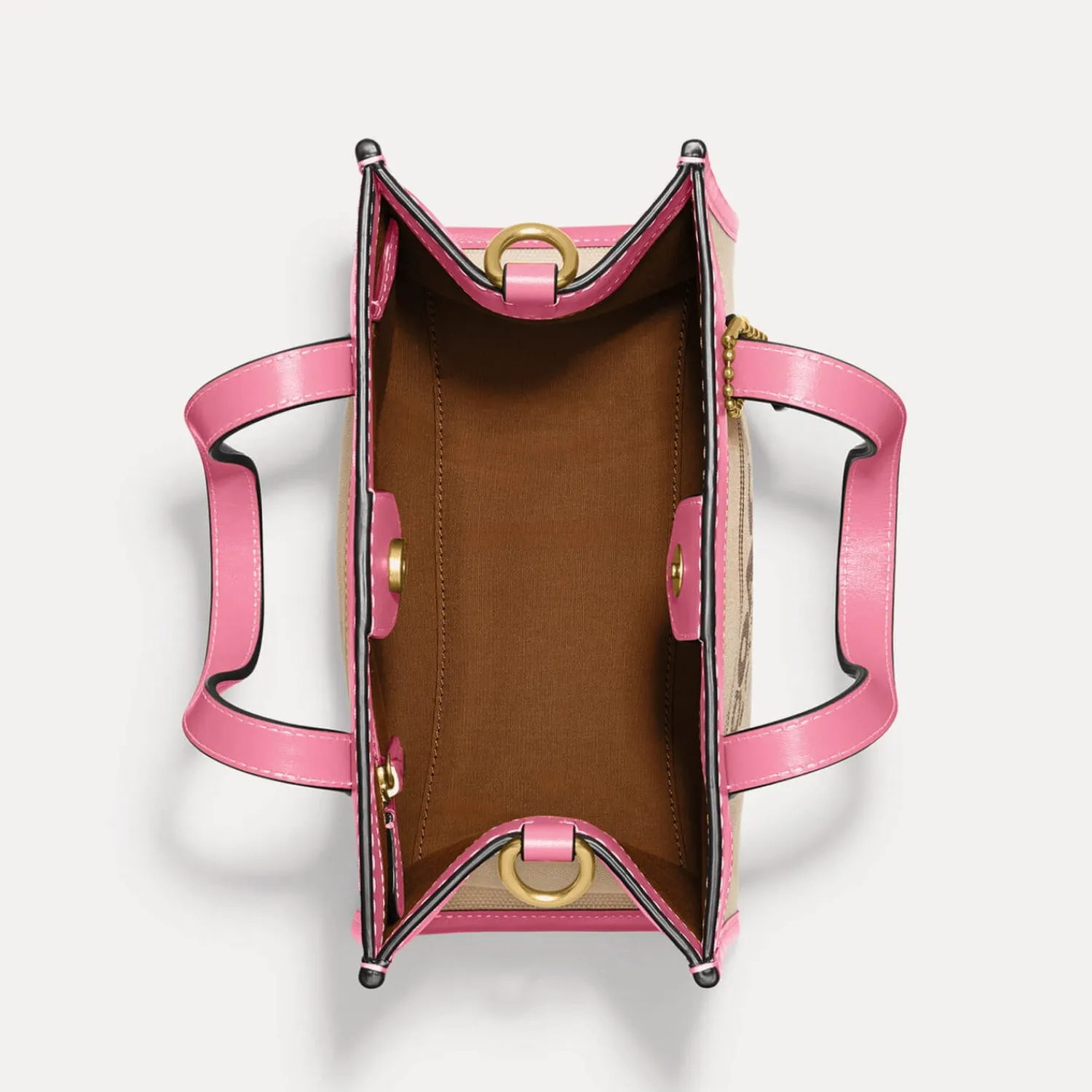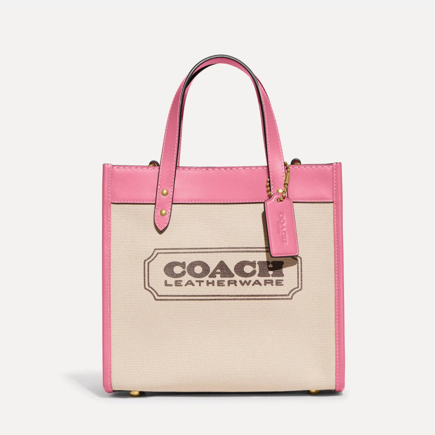 Coach Sizes Down The Classic Tote To Offer This Crossbody Iteration. Made From Durable Canvas It Is Styled Into A Structured Design With Smooth Pink Leather Trims. Smooth Top Handles And A Webbing Strap Allow You To Carry The Design To Suit You From Day To Day.