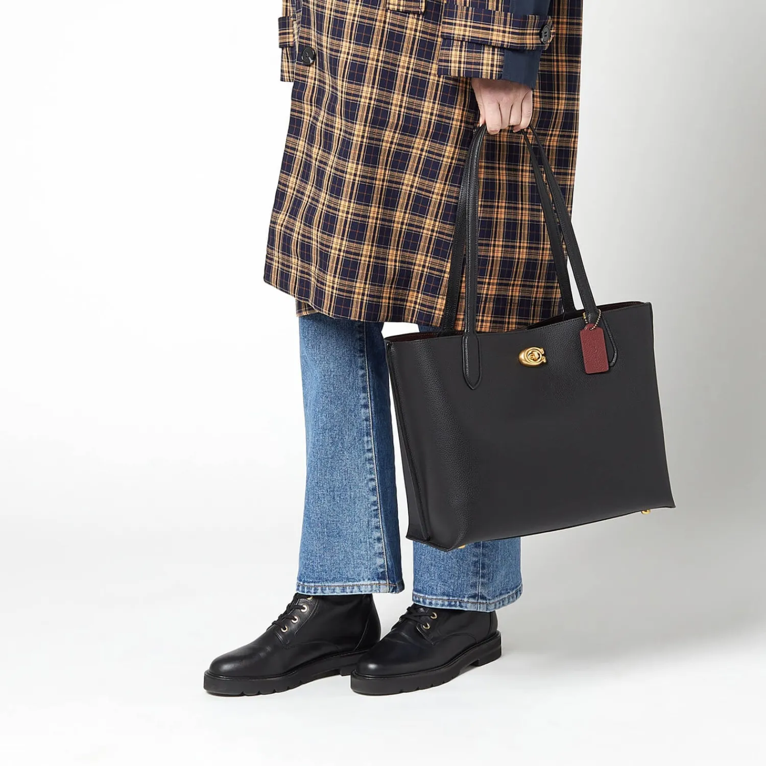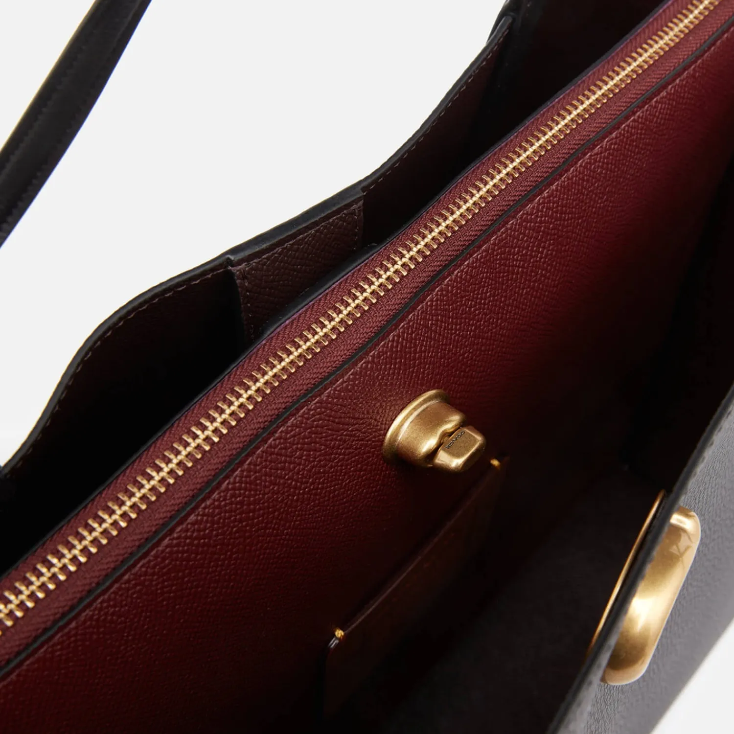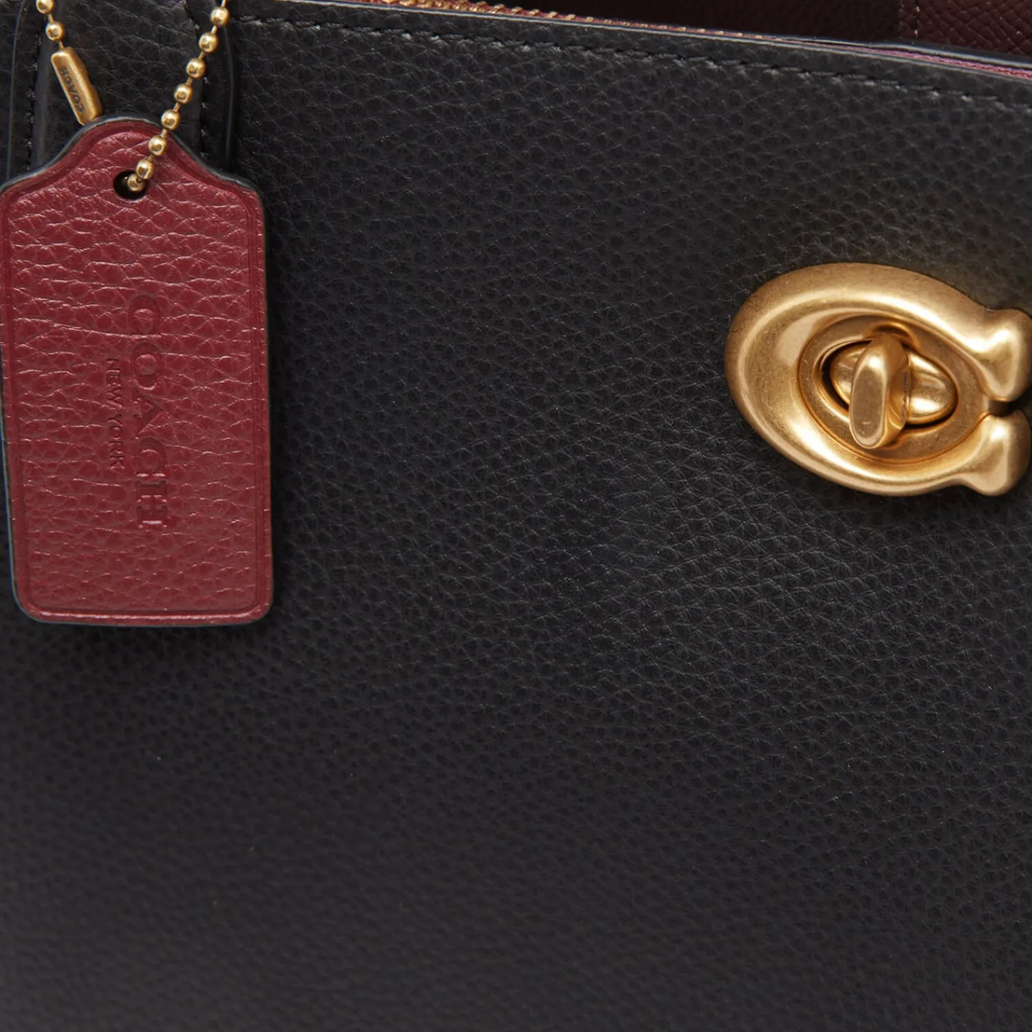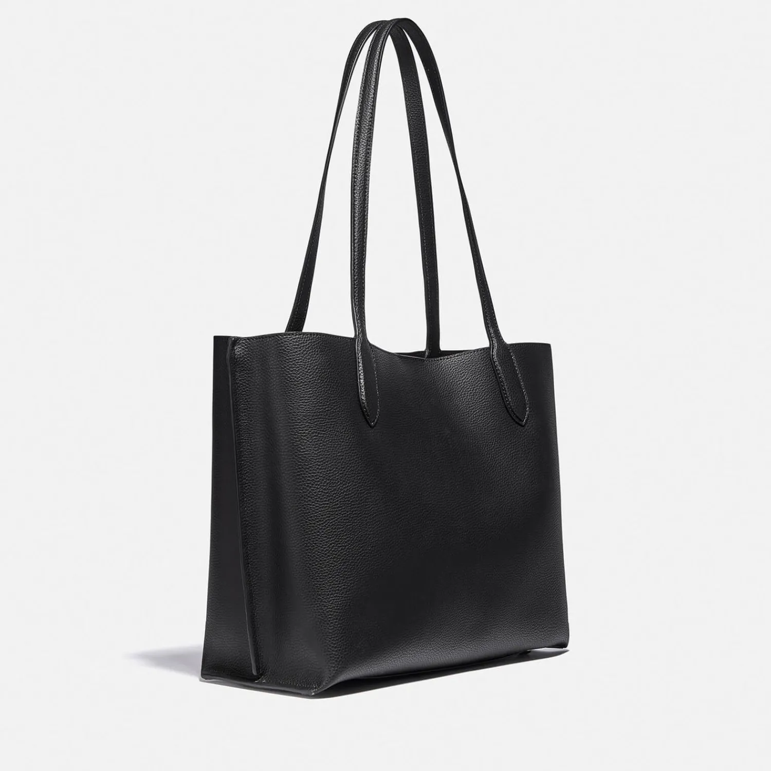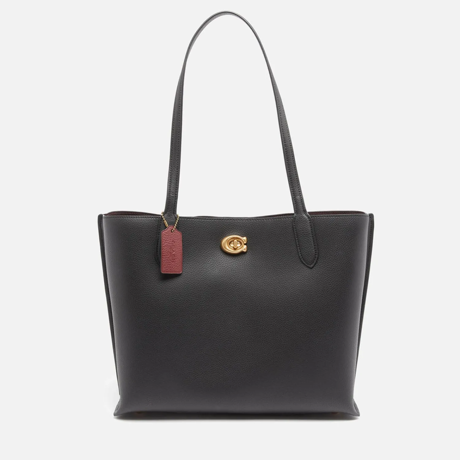 Coach New York Black Polished Pebble Leather Tote Bag With A Spacious Design For Your Daily Essentials. Secured With A Signature Gold-Tone āCā Turnlock Closure The Inside Of The Bag Has Two Open Pockets A Central Zip Pocket And Can Hold Up To A 13ā Laptop. Long Handles Enable The Bag To Be Worn Over The Shoulder Or Carried By Hand. Four Protective Metal Feet On The Base. Finished With A Contrasting Branded Luggage Tag.