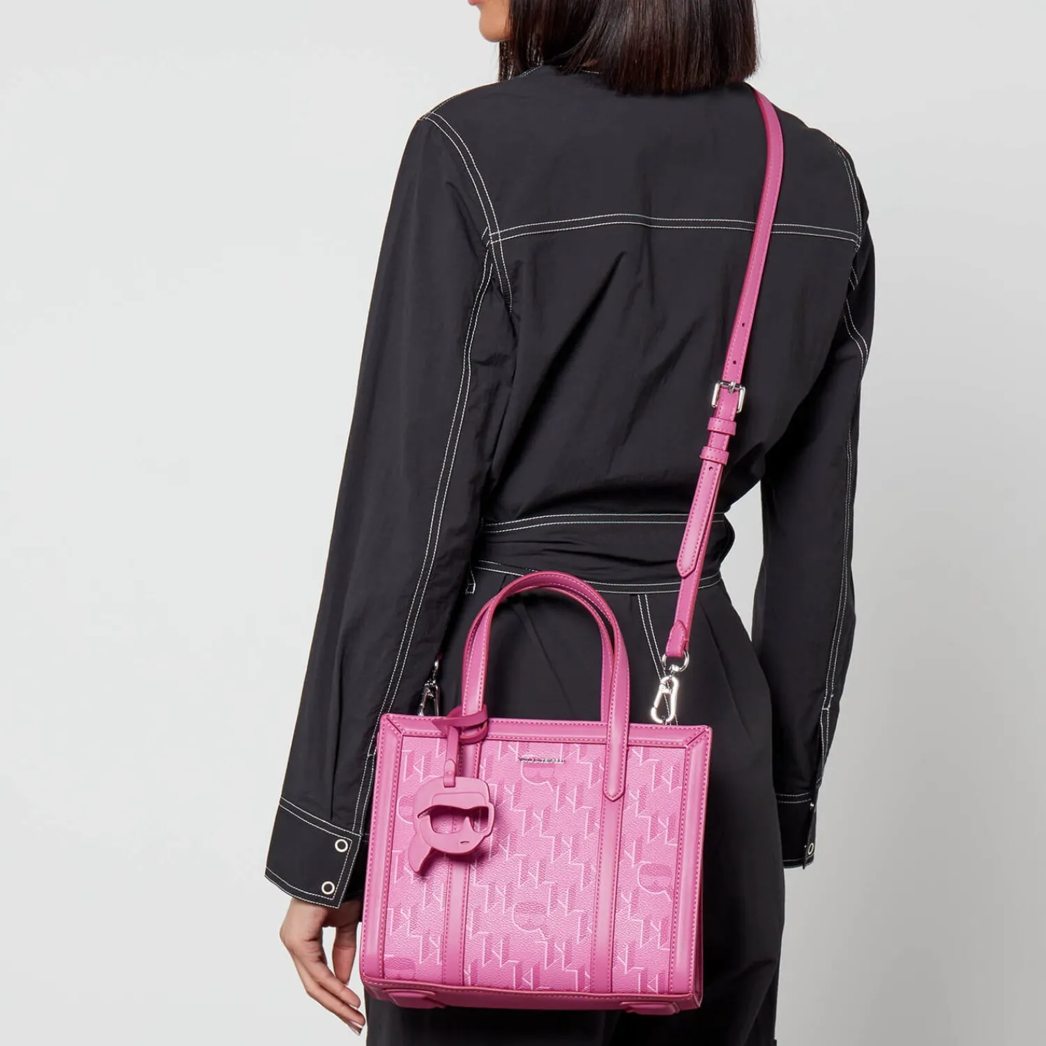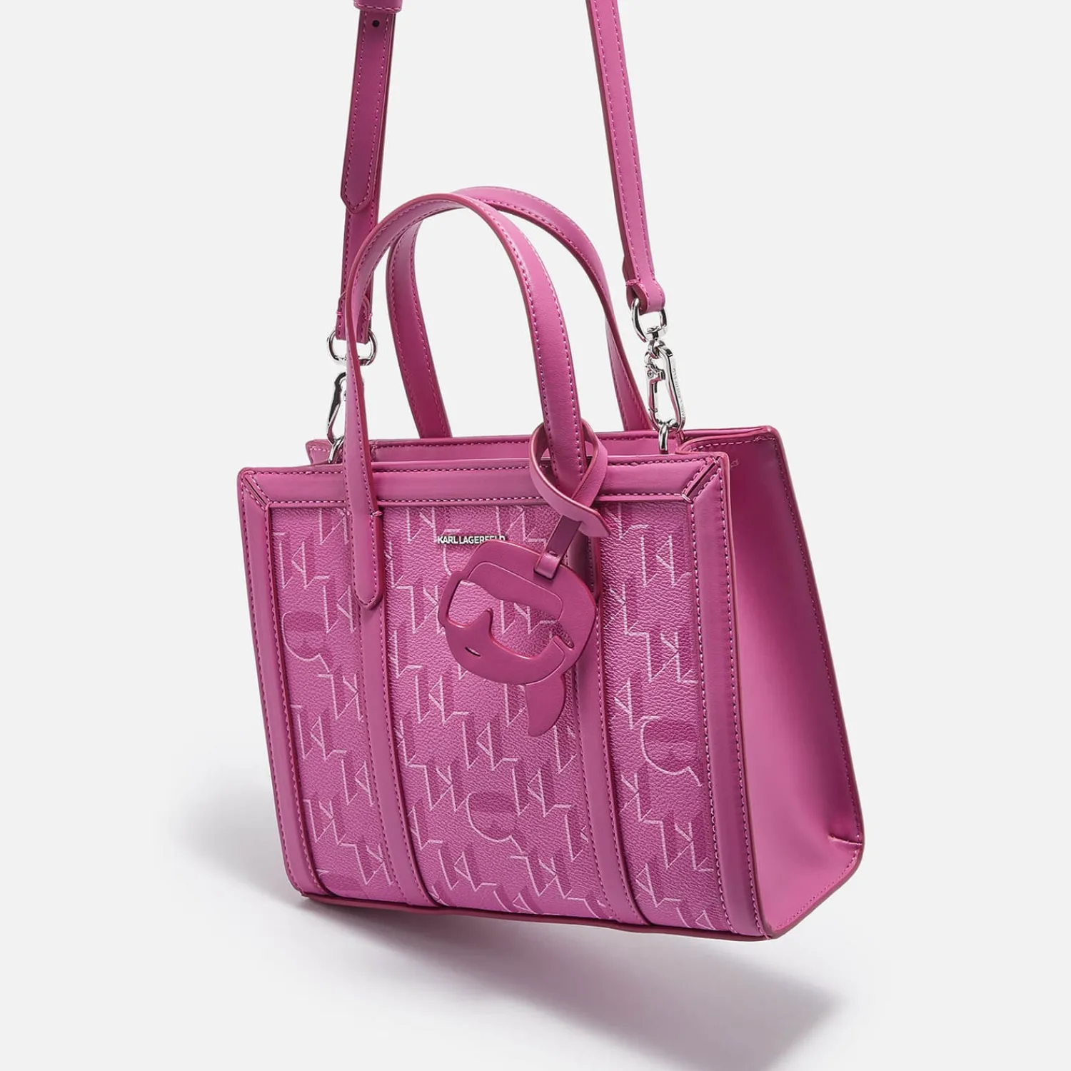 Karl Lagerfeld Interstellar K/Ikonik Small Tote BagFushia Monogrammed Faux LeatherDesigner LogosSilver-Tone HardwareAdju…