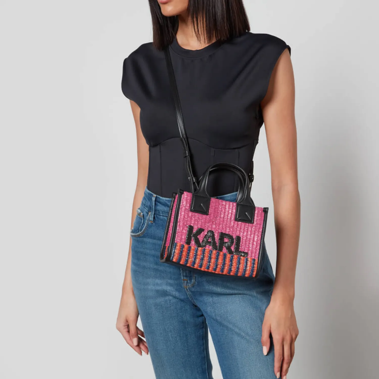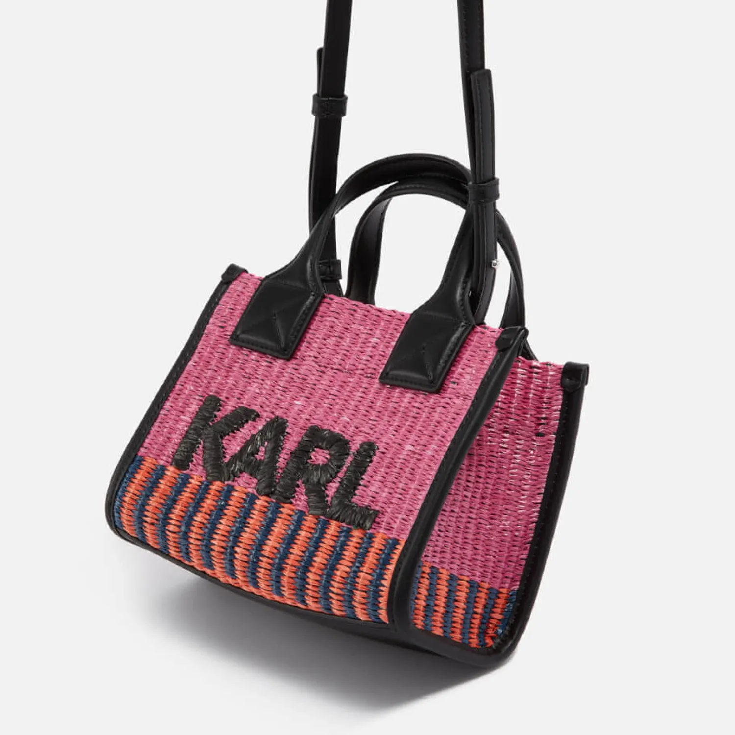 Karl Lagerfeld K/Skuare BagMulticoloured RaffiaDetachable Adjustable Shoulder StrapDesigner JacquardFaux Leather TrimsIn…
