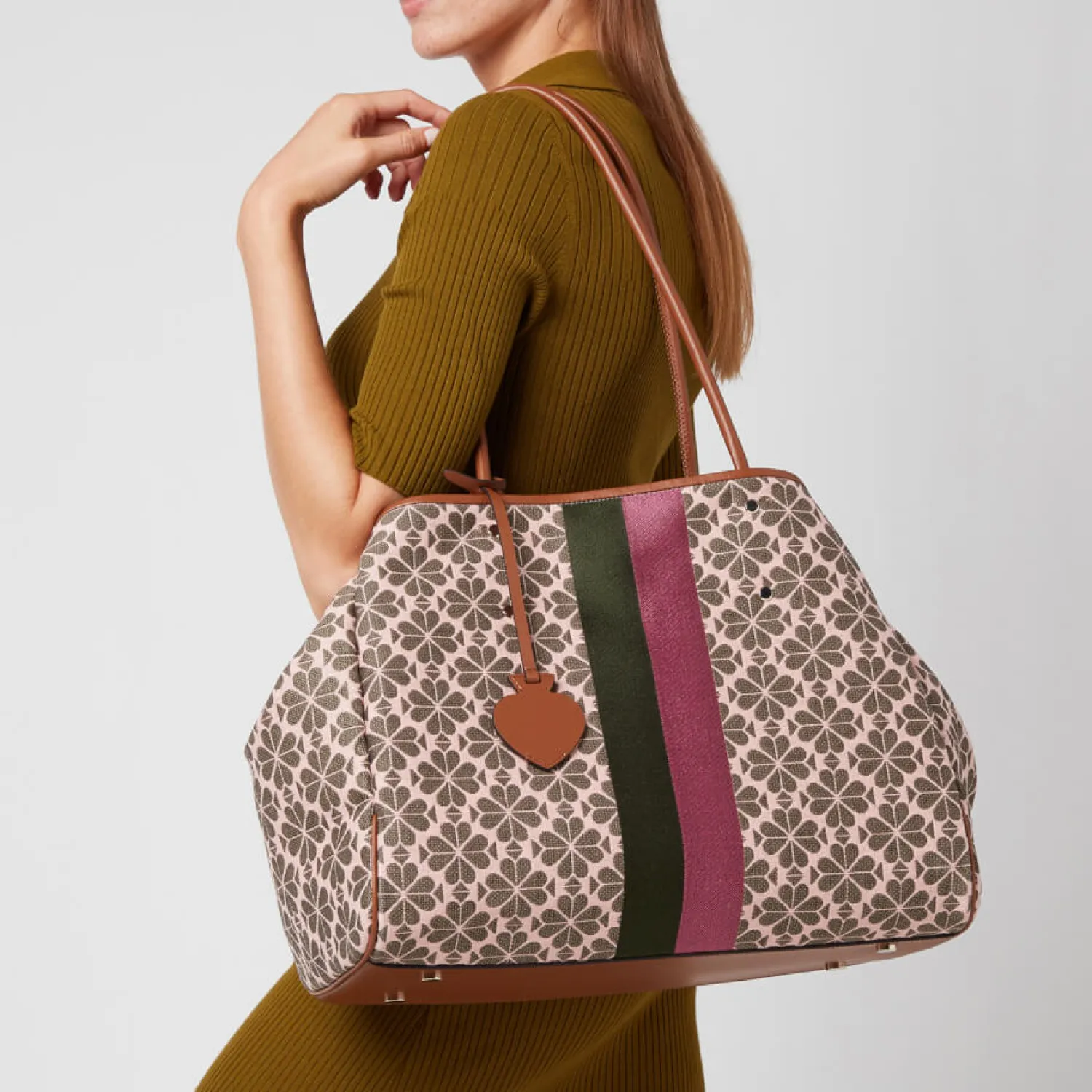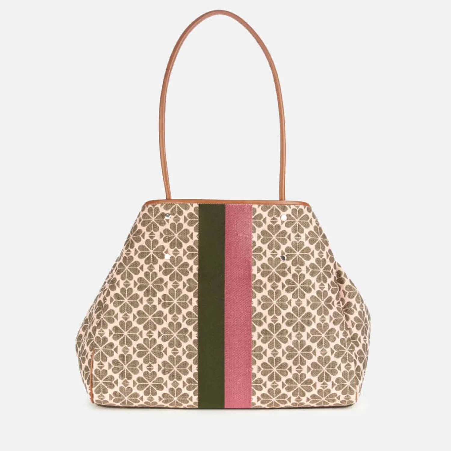 Kate Spade New York’S Aptly Named Everything Tote Bag Is A Versatile Signature Style. Realised In The Brand’S Italian Jacquard It’S Trimmed With Leather And Has A Roomy Interior Complete With A Detachable Pouch. The Iconic Spade Flower Detailing Is Offset With Archival Stripes Down The Centre.
