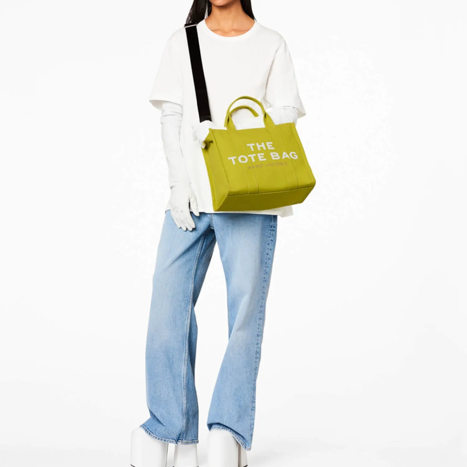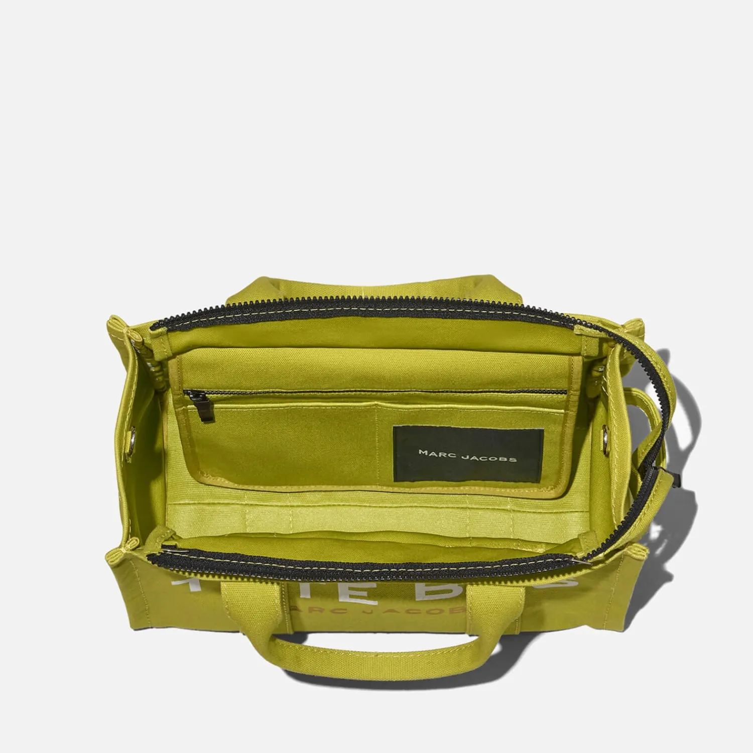 As Part Of The Colour Collection Marc Jacobs Reimagines Their Much-Loved Traveller Tote Bag In Citronelle. The Boxy Silhouette Is Made From Soft Canvas And Zips Open To A Roomy Pocketed Interior. Complete With An Interchangeable Strap The Brand’S Signature Lettering Can Be Seen Strewn Across The Front.