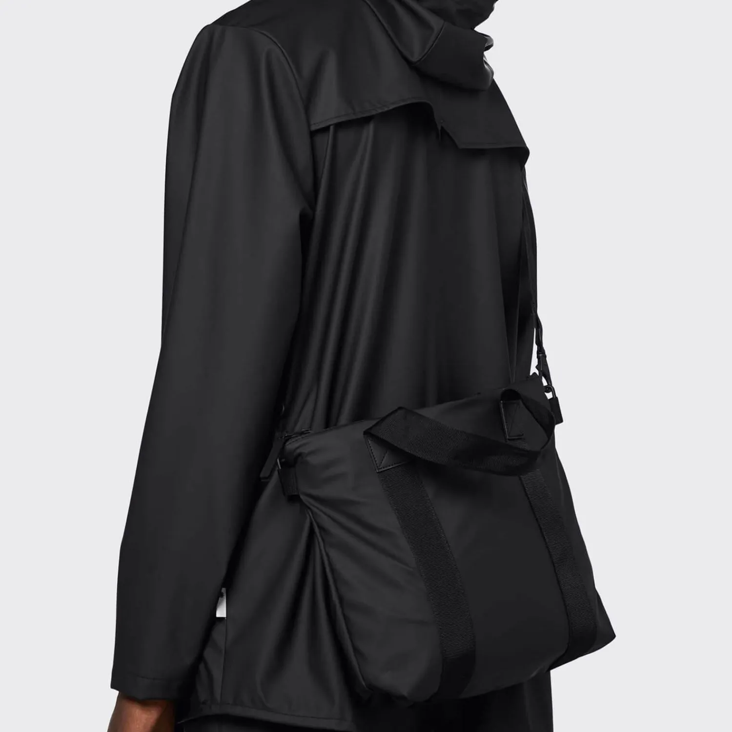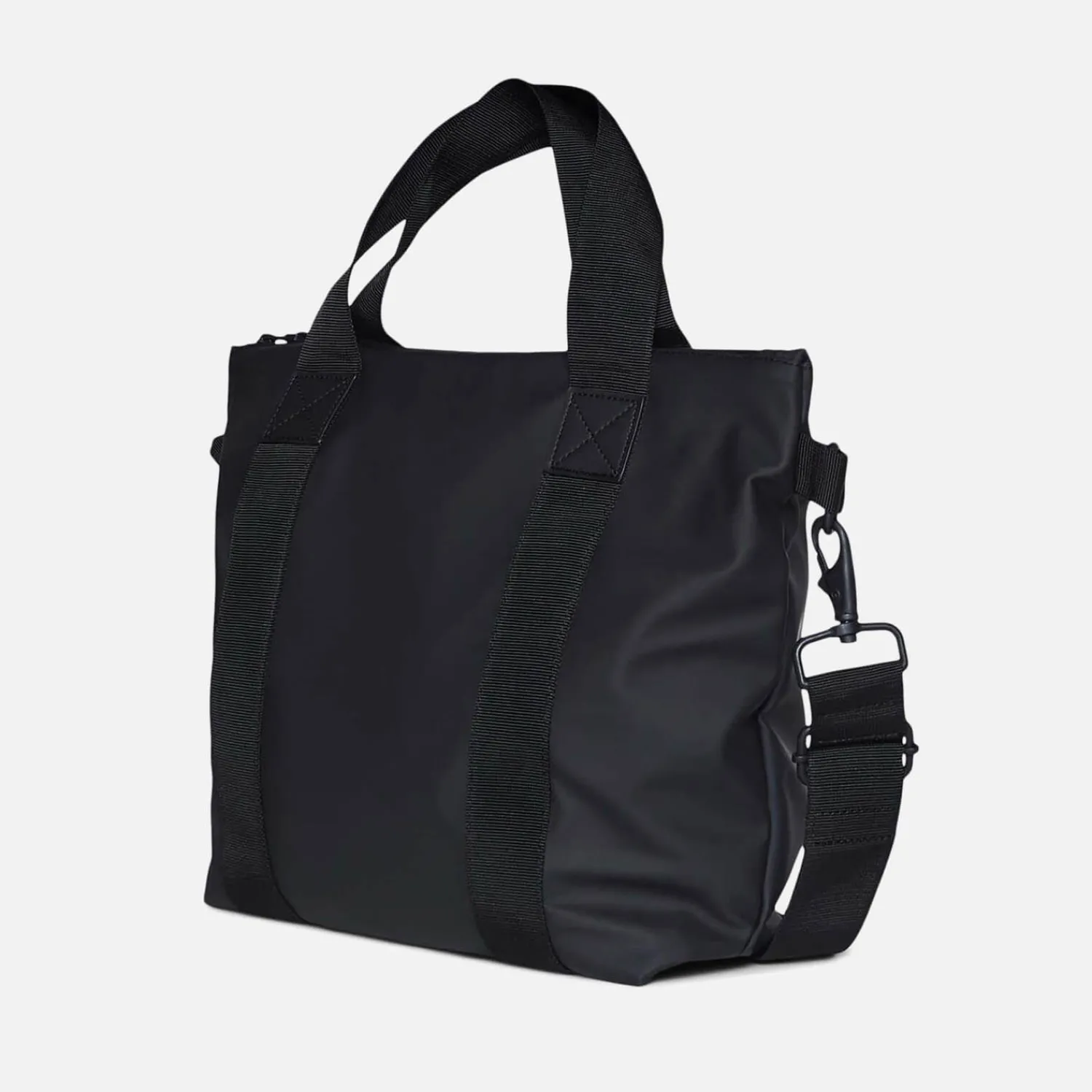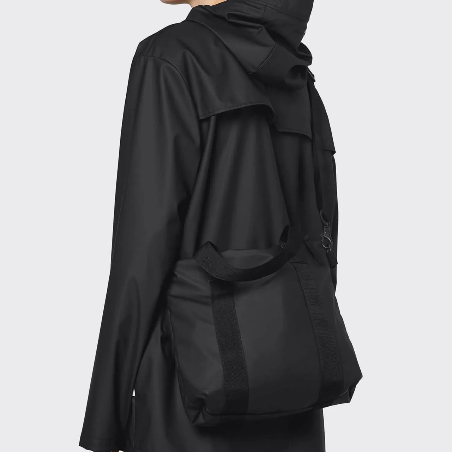 Fusing Sleek Design Elements With Optimum Functionality Rains’ Mini Tote Bag Serves As A Scaled-Down Iteration Of The Label’s Coveted Classic. Presented In Black Shell The Design Features A Flexible Main Compartment And Is Supported By An Adjustable Shoulder Strap And Top Handles For Grab-And-Go Appeal.