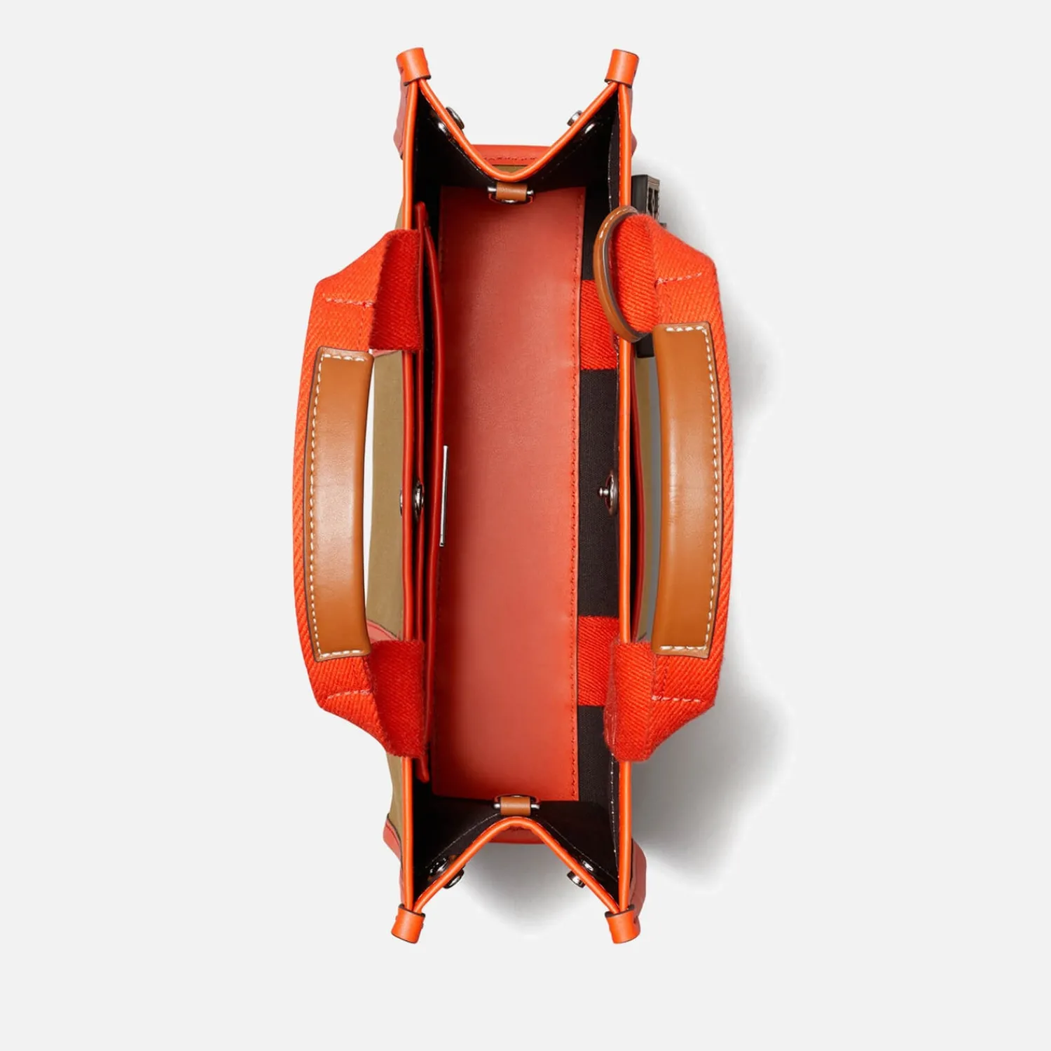 Detailed With The Iconic Double T Tory Burch Monogram The Twill Tote Bag Epitomises Timeless Design. Crafted From Neutral-Toned Structured Canvas The Bag Features Vibrant Contrast Trims That Add A Pop Of Colour To Any Ensemble While Providing Sufficient Space To Store All Of Your Daily Essentials.