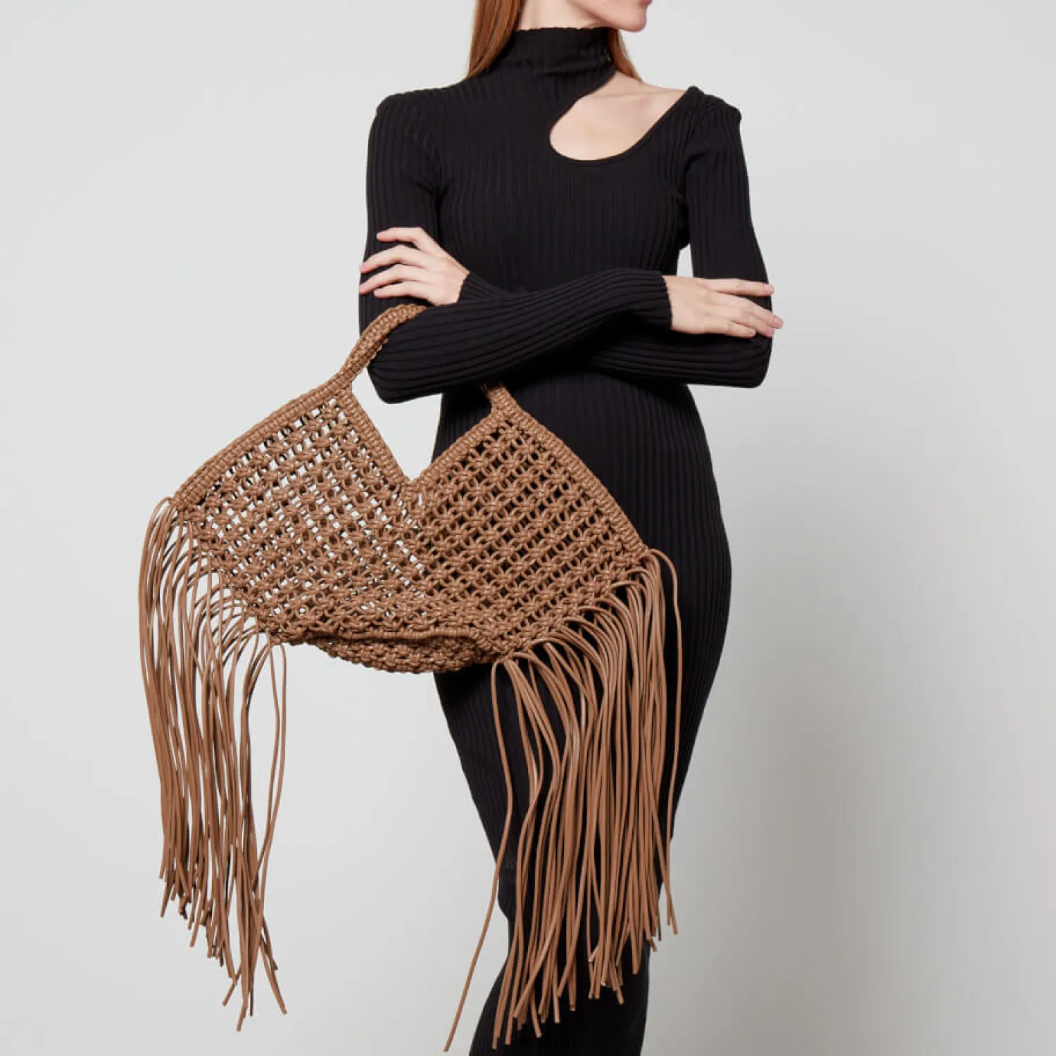 Perfectly Primed For Far-Flung Destinations And Trips To The Beach Yuzefi Reimagines Its Geometric Designs With A Bohemian Twist Via This Woven Basket Bag. Weft With Brown Vegan Leather Its Capacious Design Fits All Of The High-Summer Essentials. Long Decorative Fringes Sit At The Base And Add To Its Free-Flowing Feel.